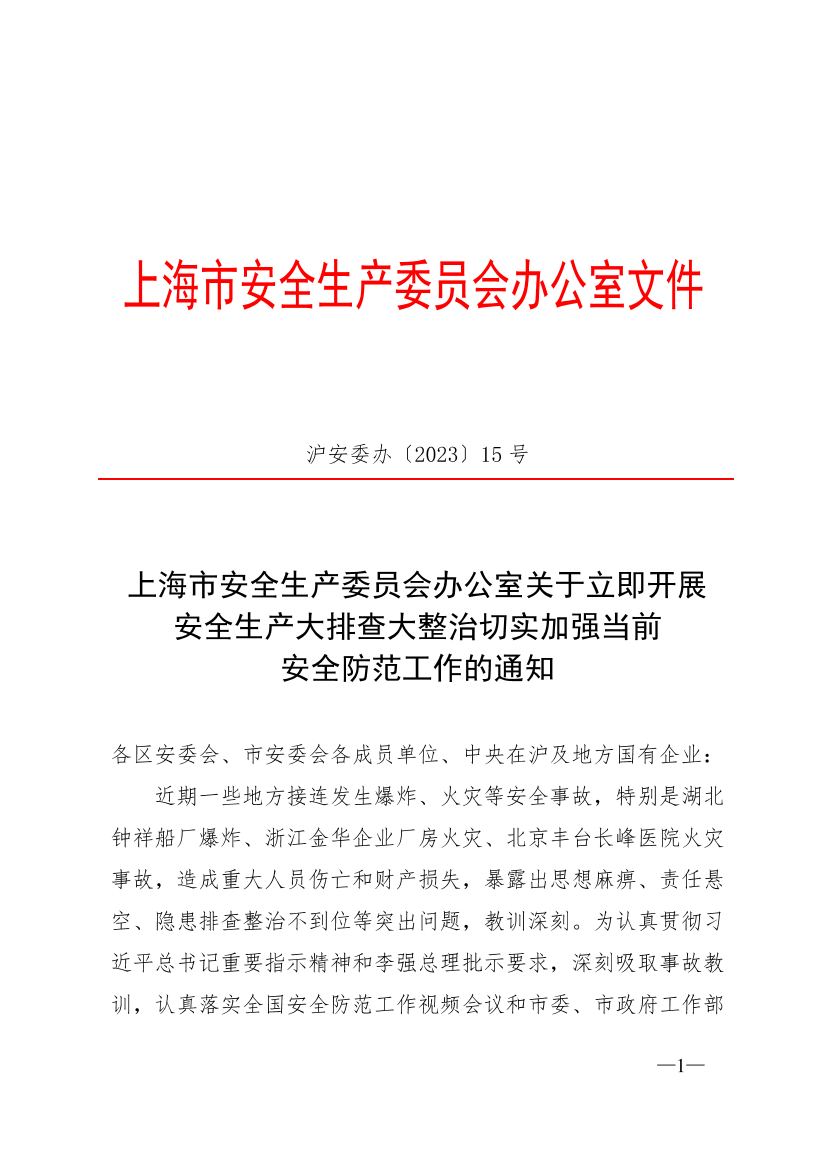 认真学习领会习近平总书记重要指示精神,时刻绷紧安全生产这根弦,落实落细国务院安委会安全生产“十五条硬措施”和“上海安全生产78条”具体措施,深化安全生产专项整治三年行动和冬春隐患专项排查整治,进一步排查各类风险隐患,突出重大隐患和重点领域,切实把安全生产责任落到实处,坚决遏制事故反弹势头,确保不发生重大安全事故,坚决筑牢城市安全运行和生产安全防线,为“五一”假期和经济社会发展营造良好的安全环境。