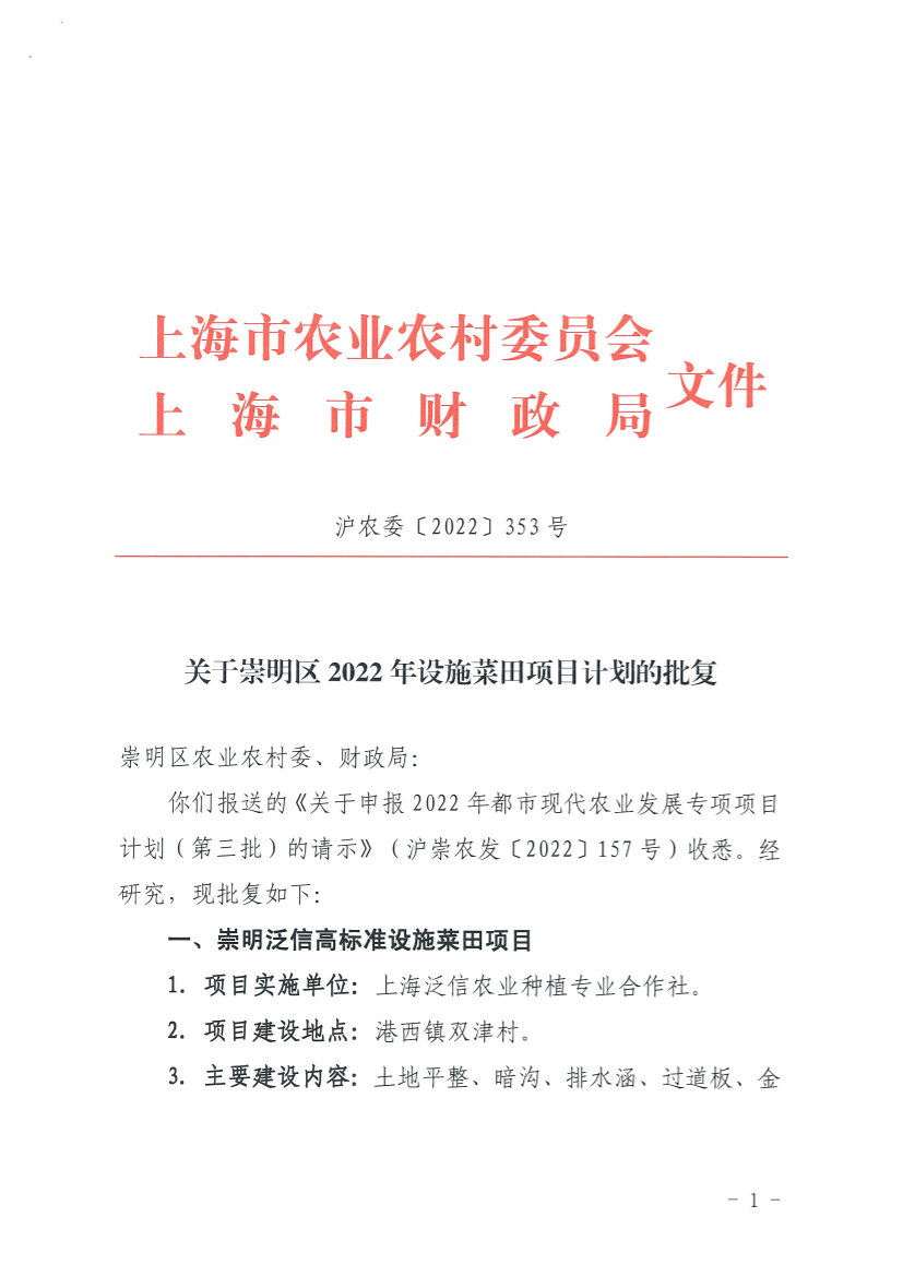1. 项目实施单位:上海泛信农业种植专业合作社。