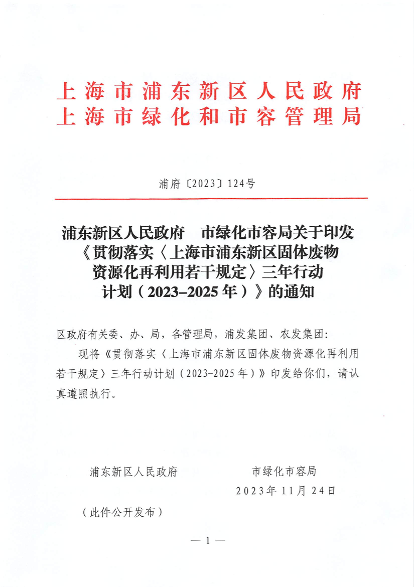 现将《贯彻落实〈上海市浦东新区固体废物资源化再利用若干规定〉三年行动计划(2023-2025年)》印发给你们,请认真遵照执行。