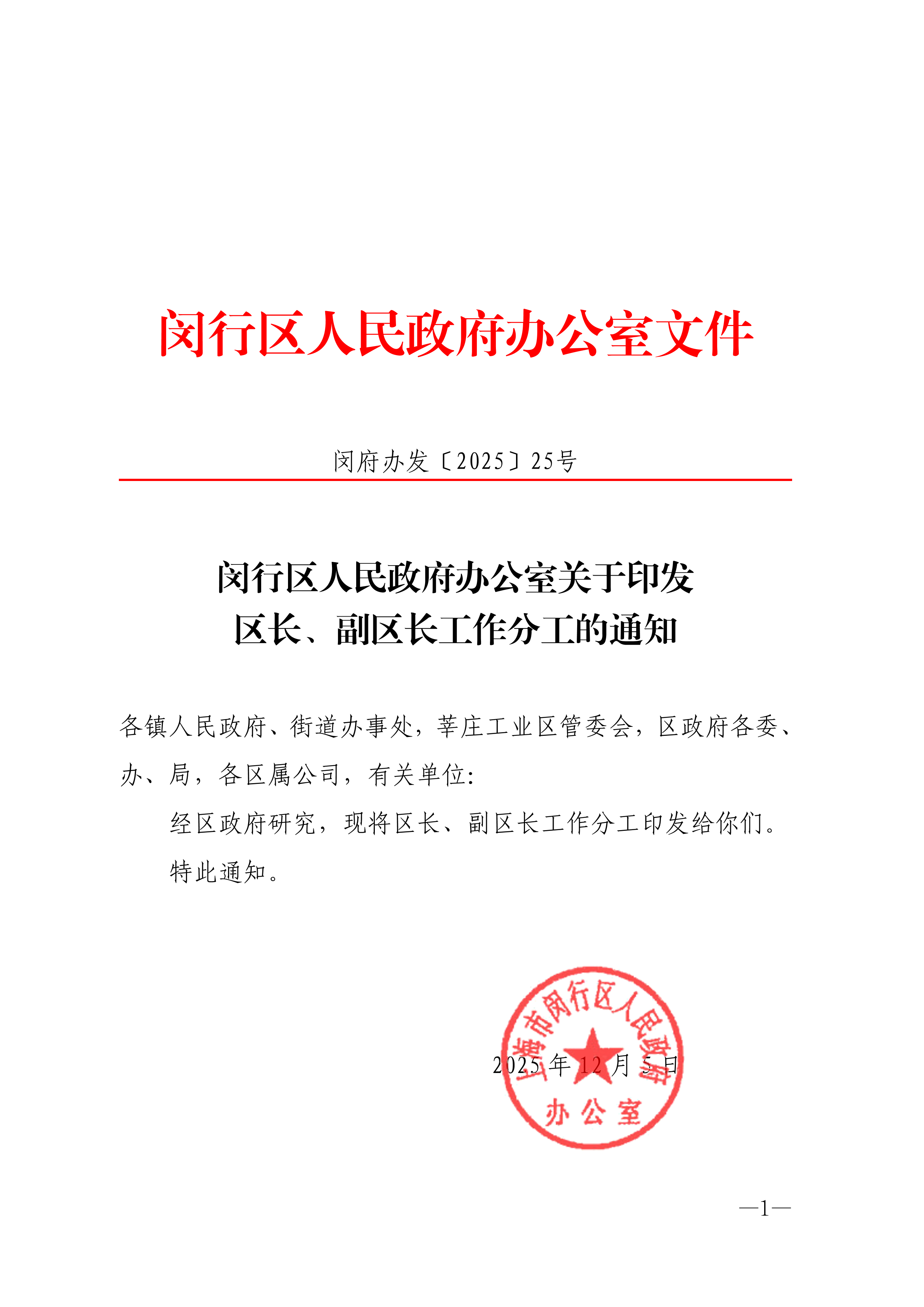 可晓林(副区长) 负责商务、外资外贸、司法行政、政府法制、市场监督管理、知识产权、城管执法、政府职能转变、虹桥国际中央商务区(闵行部分)建设等工作。