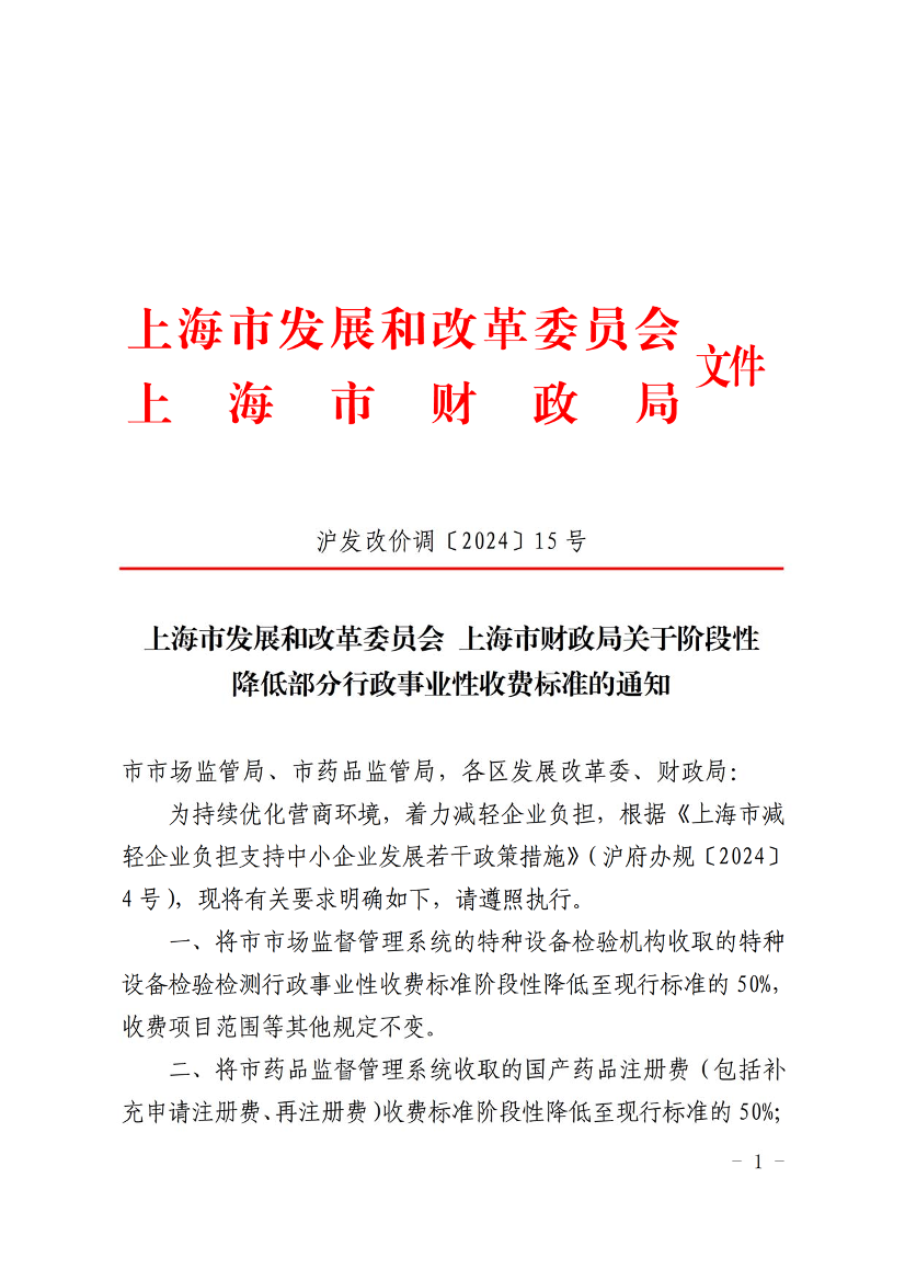 二、将市药品监督管理系统收取的国产药品注册费(包括补充申请注册费、再注册费)收费标准阶段性降低至现行标准的50%;将市药品监督管理系统收取的境内第二类医疗器械产品注册费(包括首次注册费、变更注册费、延续注册费)收费标准阶段性降低至现行标准的35%。收费项目范围等其他规定不变。
