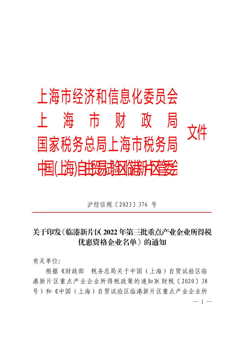 附件:临港新片区2022年第三批重点产业企业所得税优惠资格企业名单
