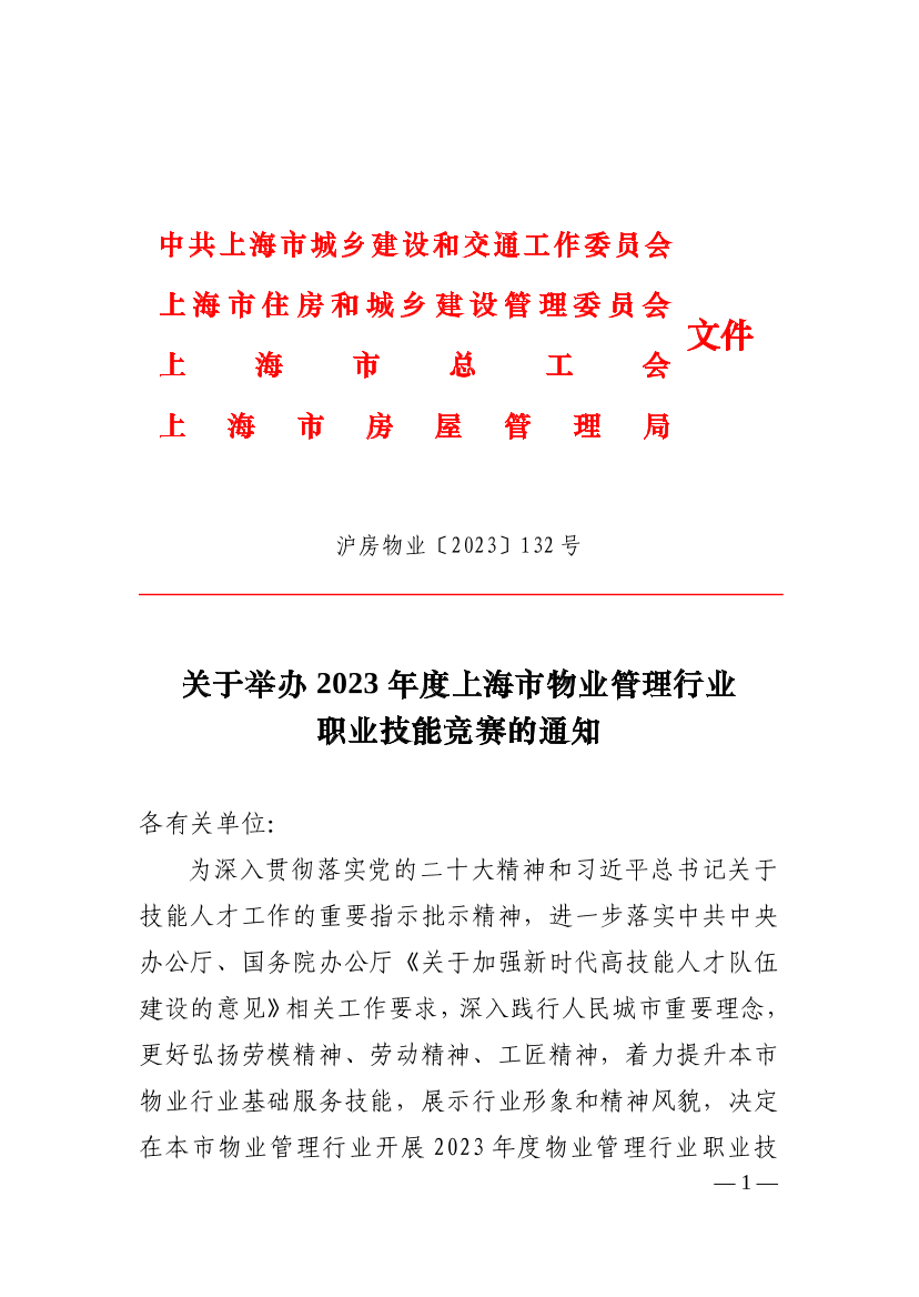 关于举办2023年度上海市物业管理行业职业技能竞赛的通知