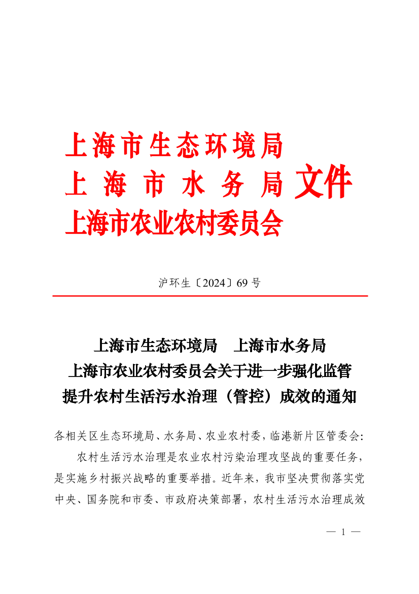 为建立健全本市农村生活污水处理设施长效监管机制、加强未治理农户的生活污水管控,根据《关于进一步推进农村生活污水治理的指导意见》(环办土壤〔2023〕24号)有关要求,结合本市实际情况,现将有关事项通知如下。
