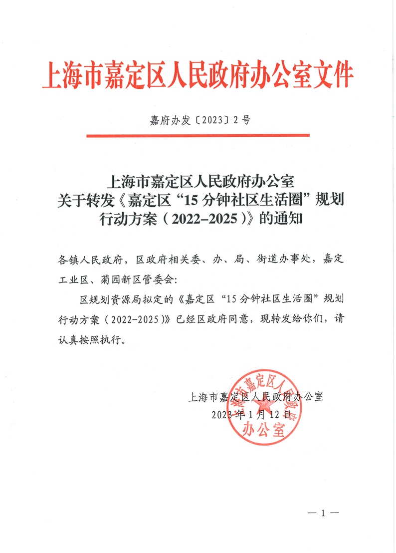 区规划资源局拟定的《嘉定区“15分钟社区生活圈”规划行动方案(2022-2025)》已经区政府同意,现转发给你们,请认真按照执行。