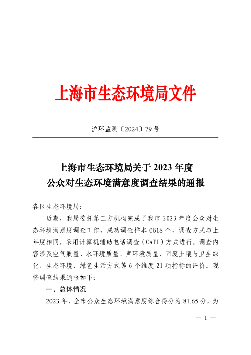 近期,我局委托第三方机构完成了我市2023年度公众对生态环境满意度调查工作,成功调查样本6618个,调查方式与上年度相同,采用计算机辅助电话调查(CATI)方式进行。调查内容涉及空气质量、水环境质量、声环境质量、固废土壤与卫生绿化、生态环境、绿色生活方式等6个维度21项指标的评价。现将调查结果通报如下: