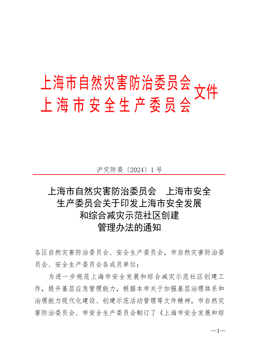 为进一步规范上海市安全发展和综合减灾示范社区创建工作,提升基层应急管理能力,根据本市关于加强基层治理体系和治理能力现代化建设、创建示范活动管理等文件精神,市自然灾害防治委员会、市安全生产委员会制订了《上海市安全发展和综合减灾示范社区创建管理办法》。现印发你们,请遵照执行。