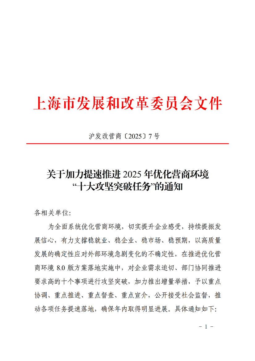 为全面系统优化营商环境,切实提升企业感受,持续提振发展信心,有力支撑稳就业、稳企业、稳市场、稳预期,以高质量发展的确定性应对外部环境急剧变化的不确定性,在推进优化营商环境8.0版方案落地实施中,对企业需求迫切、部门协同推进要求高的十个事项进行攻坚突破,加力推出增量举措,予以重点协调、重点推进、重点督查、重点宣介,公开接受社会监督,推动各项任务提速落地,确保年内取得明显进展。具体通知如下: