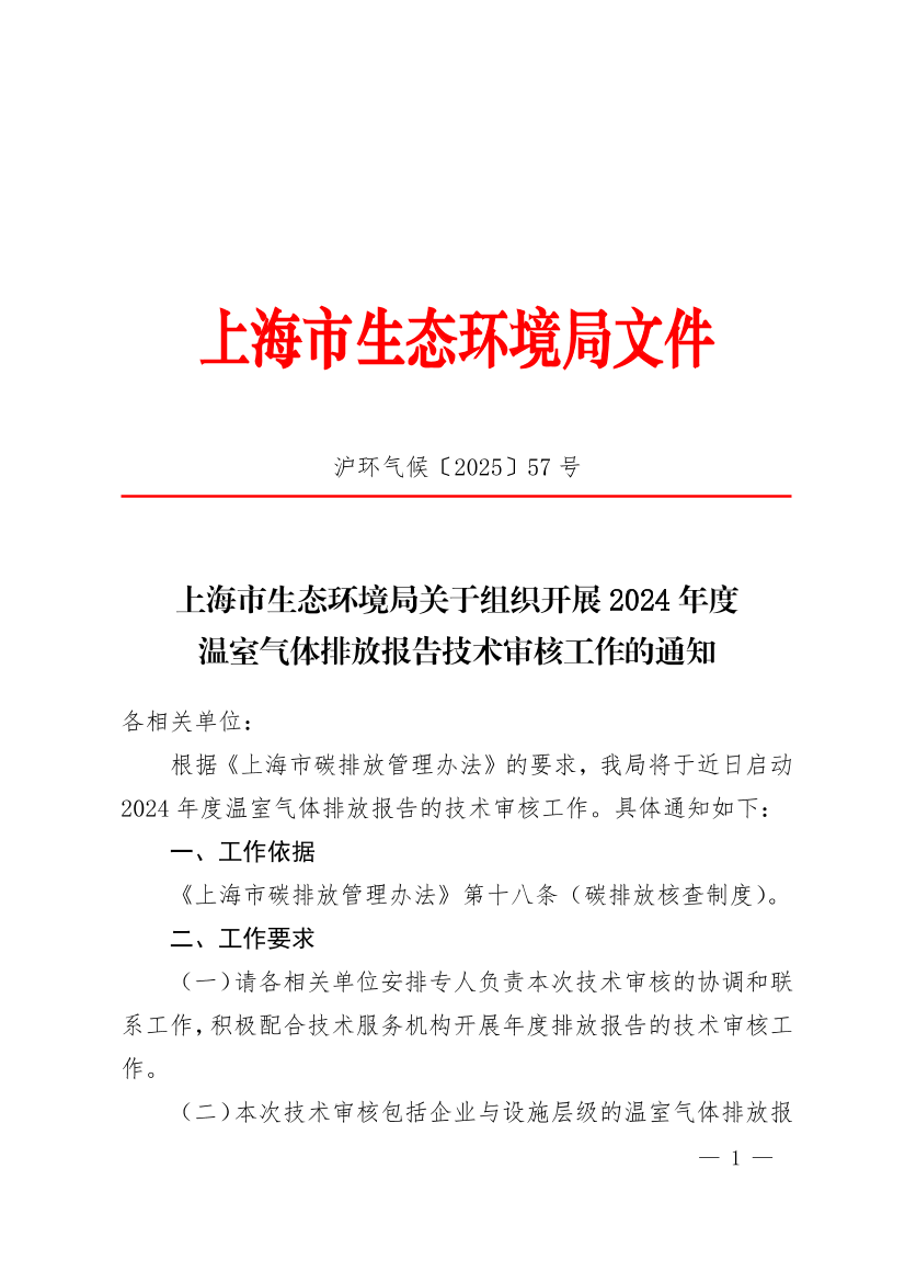 根据《上海市碳排放管理办法》的要求,我局将于近日启动2024年度温室气体排放报告的技术审核工作。具体通知如下: