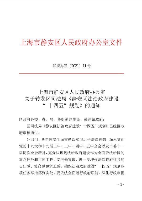 区司法局《静安区法治政府建设“十四五”规划》已经区政府审核通过。