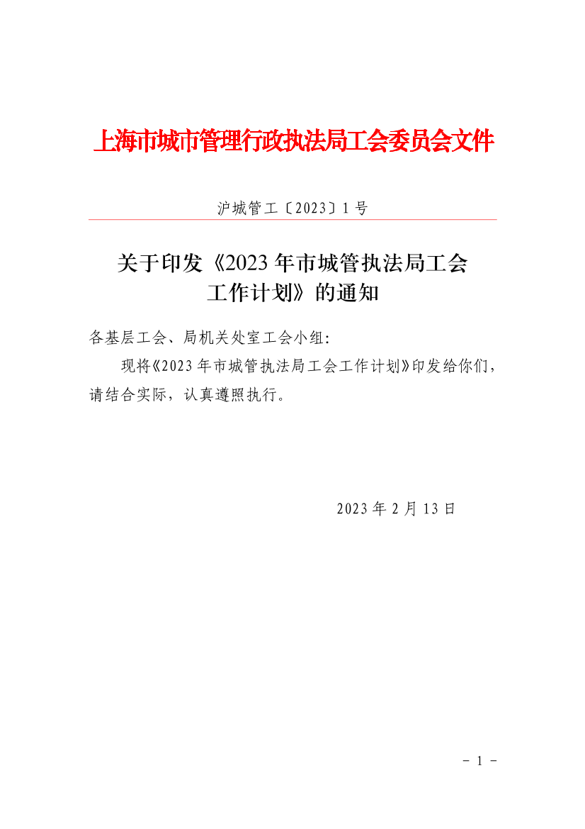 上海市城市管理行政执法局办公室 2023年2月13日印发