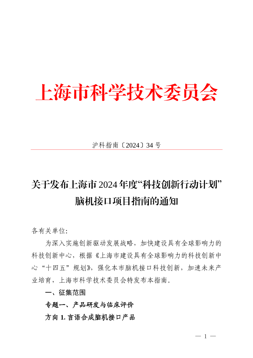 为深入实施创新驱动发展战略,加快建设具有全球影响力的科技创新中心,根据《上海市建设具有全球影响力的科技创新中心“十四五”规划》,强化本市脑机接口科技创新,加速未来产业培育,上海市科学技术委员会特发布本指南。