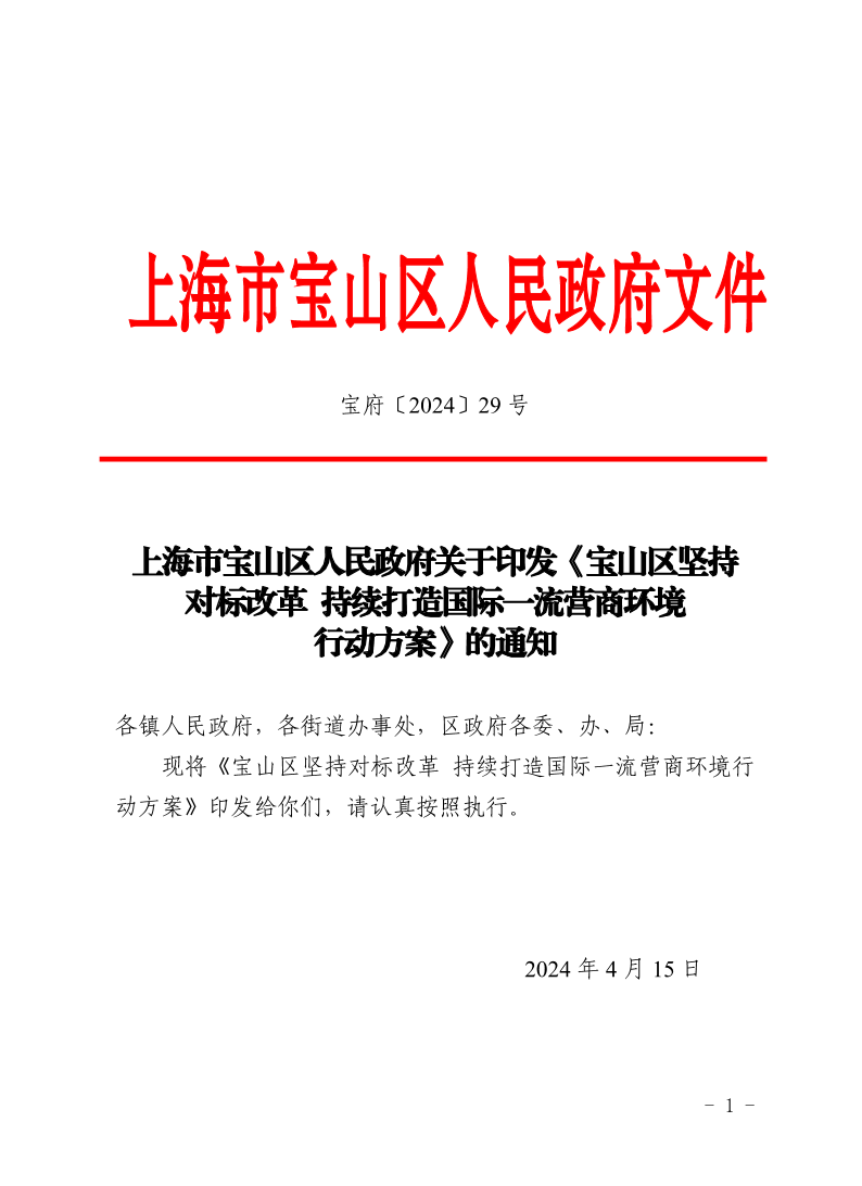 现将《宝山区坚持对标改革 持续打造国际一流营商环境行动方案》印发给你们,请认真按照执行。