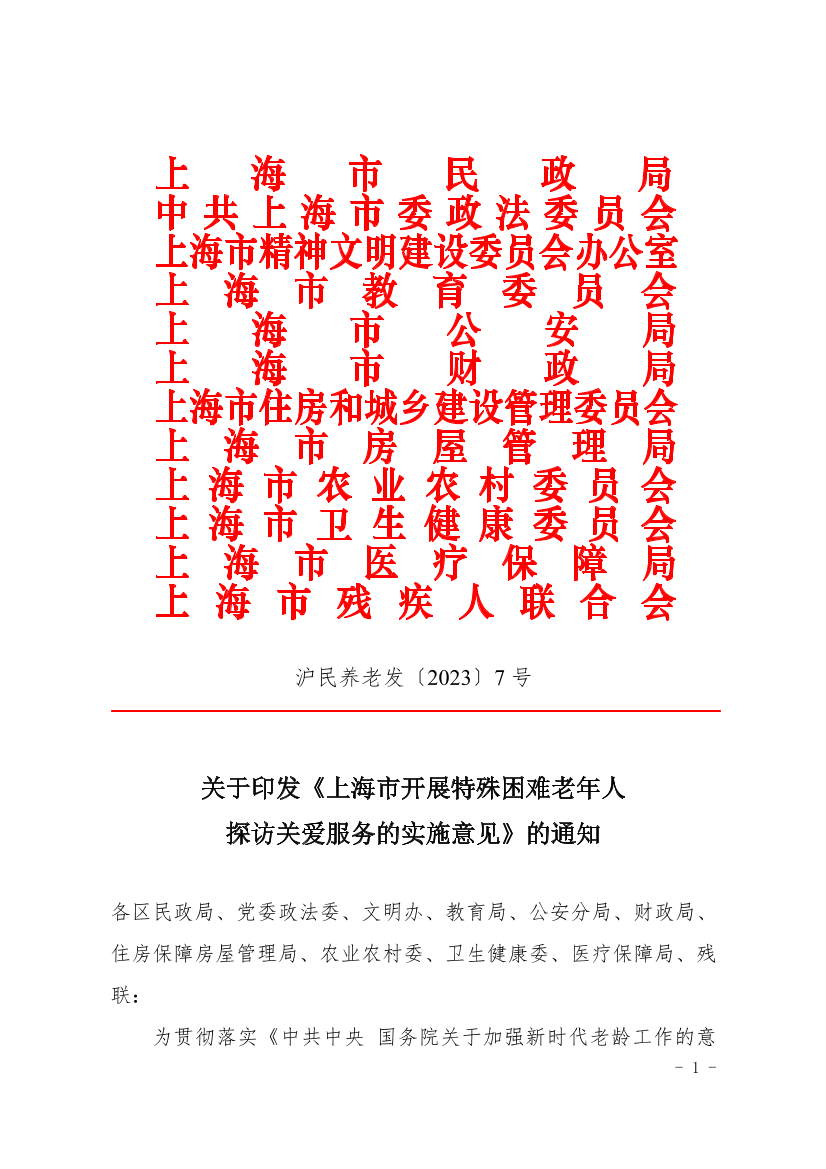 上海市开展特殊困难老年人探访关爱服务的实施意见