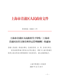 经区政府第90次常务会议审议通过,现将《上海市青浦区经营主体住所登记管理细则》印发给你们,请认真按照执行。