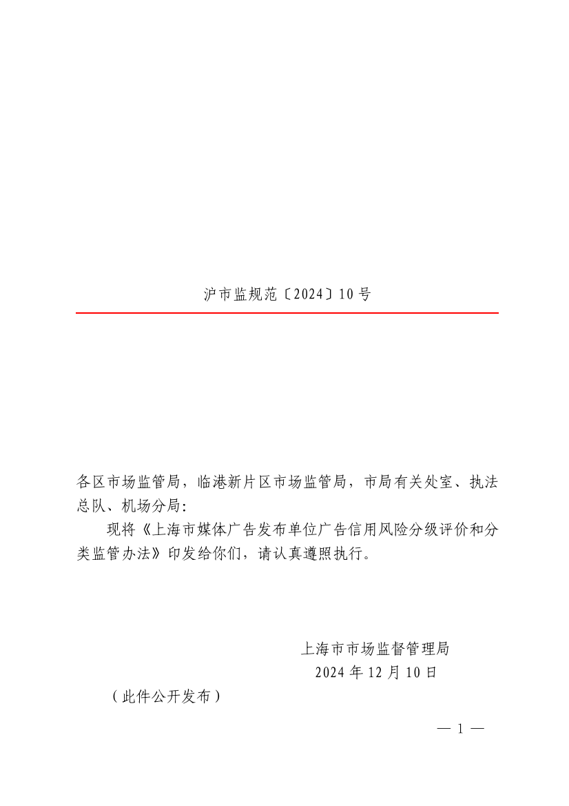 上海市媒体广告发布单位广告信用风险分级评价和分类监管办法