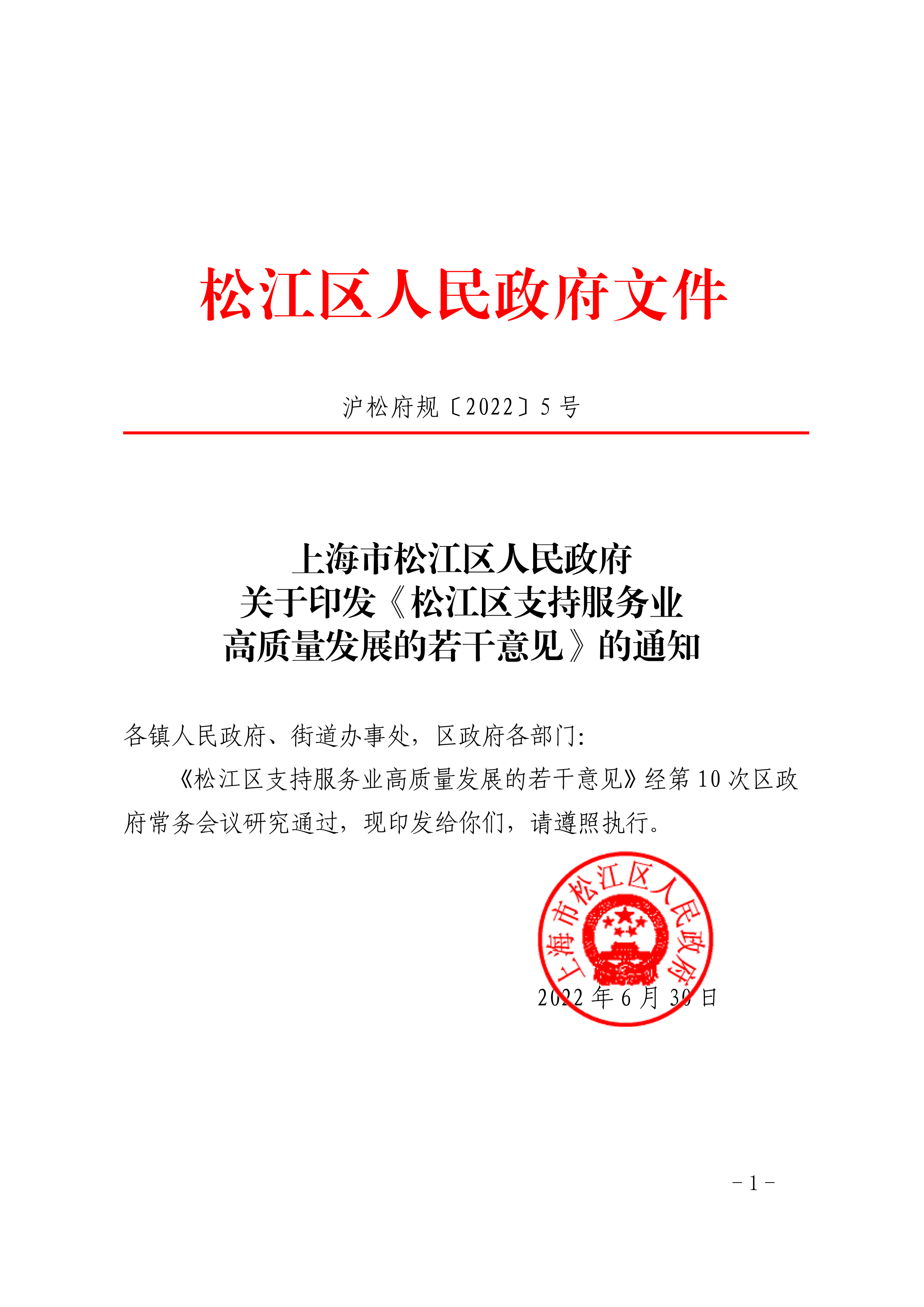 《松江区支持服务业高质量发展的若干意见》经第10次区政府常务会议研究通过,现印发给你们,请遵照执行。