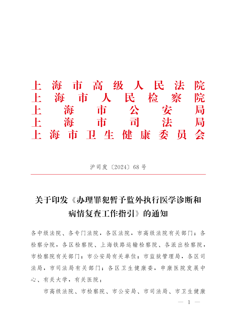 各中级法院、各专门法院,各区法院,市高级法院有关部门;各检察分院,各区检察院、上海铁路运输检察院、各派出检察院,市检察院有关部门;市公安局有关单位;市监狱管理局,各区司法局,市司法局有关部门;各区卫生健康委,申康医院发展中心、有关大学,有关医院: