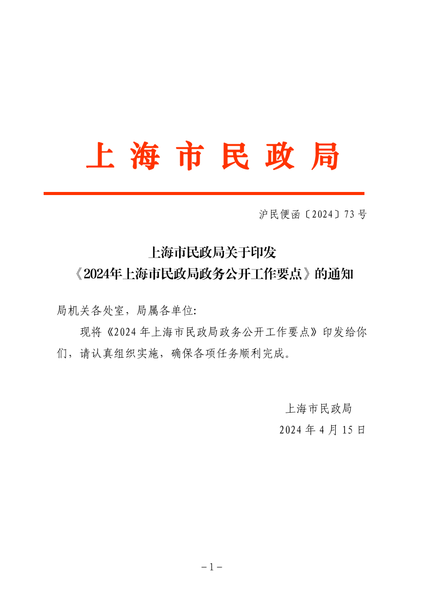 现将《2024年上海市民政局政务公开工作要点》印发给你们,请认真组织实施,确保各项任务顺利完成。