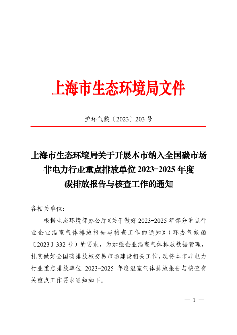 根据生态环境部办公厅《关于做好2023-2025年部分重点行业企业温室气体排放报告与核查工作的通知》(环办气候函〔2023〕332号)的要求,为加强企业温室气体排放数据管理,扎实做好全国碳排放权交易市场建设相关工作,现将本市非电力行业重点排放单位2023-2025年度温室气体排放报告与核查有关重点工作要求通知如下。