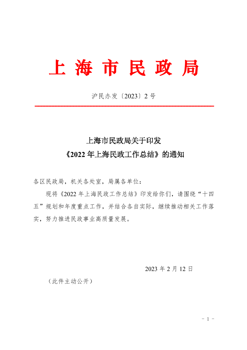 2022年,上海民政全力推动公共服务领域各项工作的落地落实,更好地满足人民群众多层次多样化的公共服务需求。