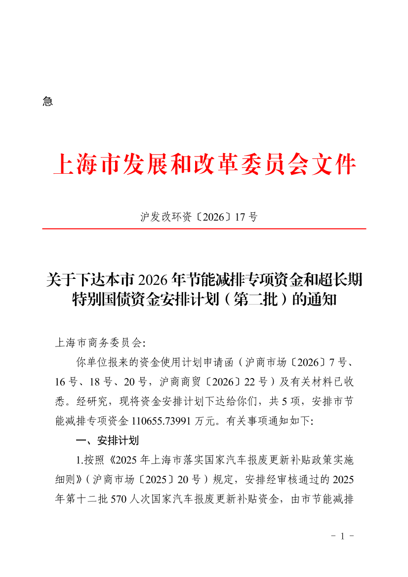 1.按照《2025年上海市落实国家汽车报废更新补贴政策实施细则》(沪商市场〔2025〕20号)规定,安排经审核通过的2025年第十二批570人次国家汽车报废更新补贴资金,由市节能减排专项资金安排1043万元。