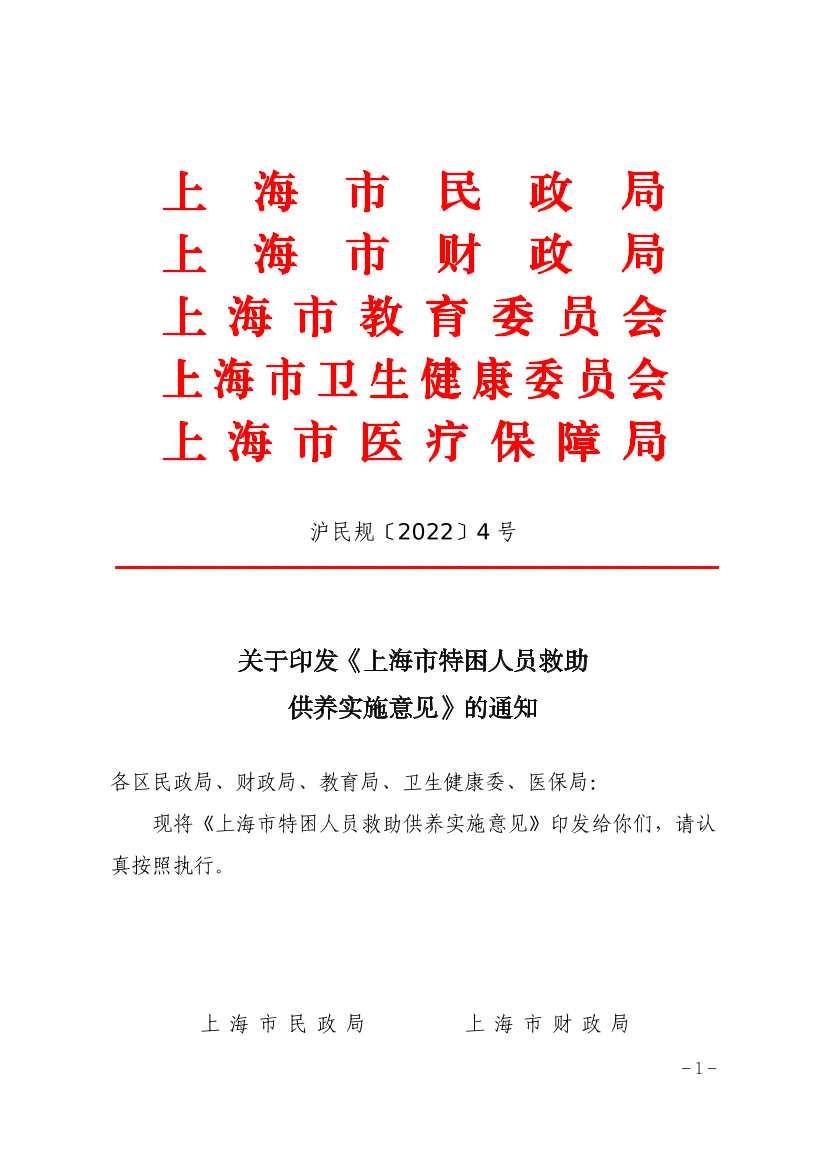 现将《上海市特困人员救助供养实施意见》印发给你们,请认真按照执行。