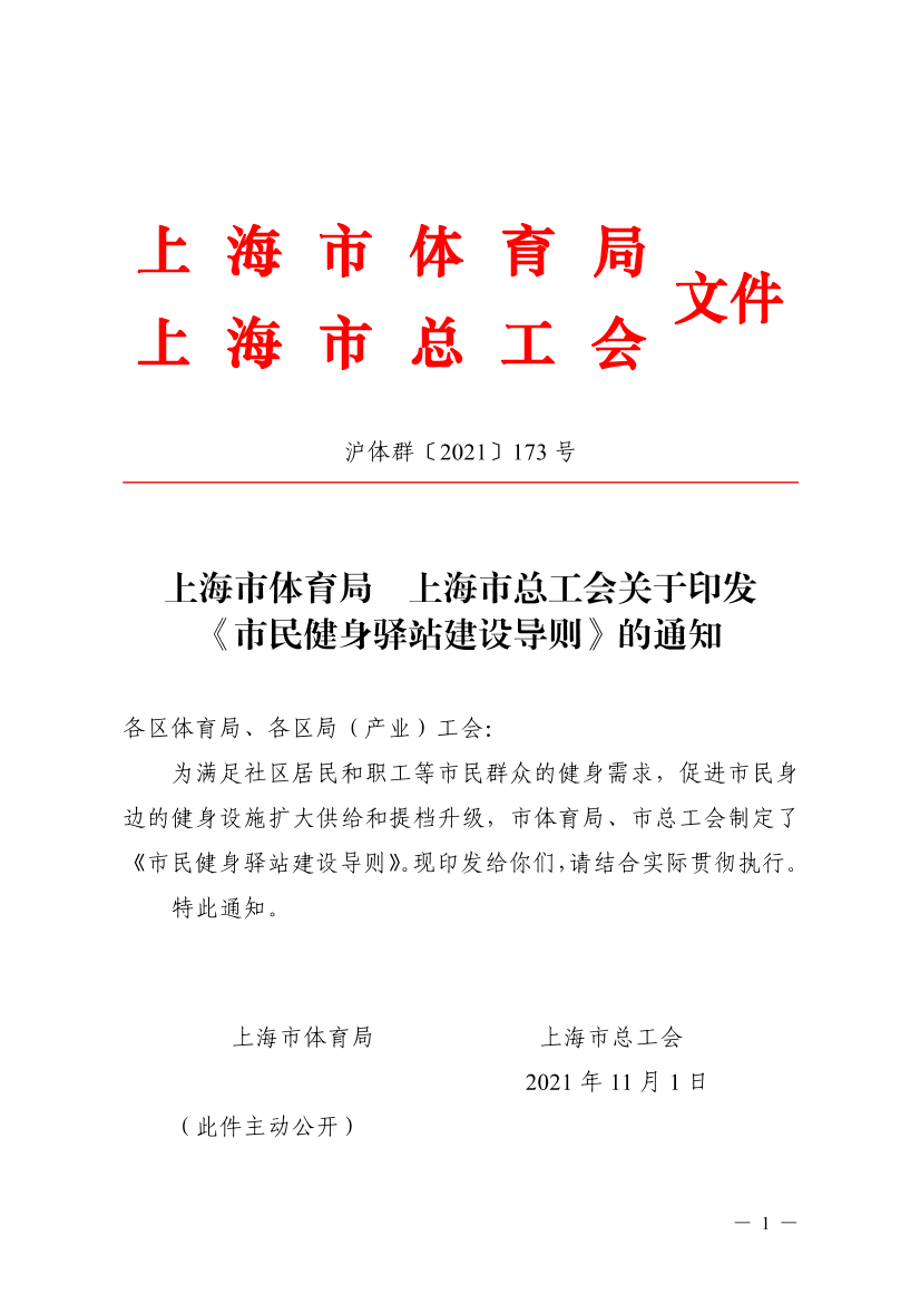 为满足社区居民和职工等市民群众的健身需求,促进市民身边的健身设施扩大供给和提档升级,市体育局、市总工会制定了《市民健身驿站建设导则》。现印发给你们,请结合实际贯彻执行。