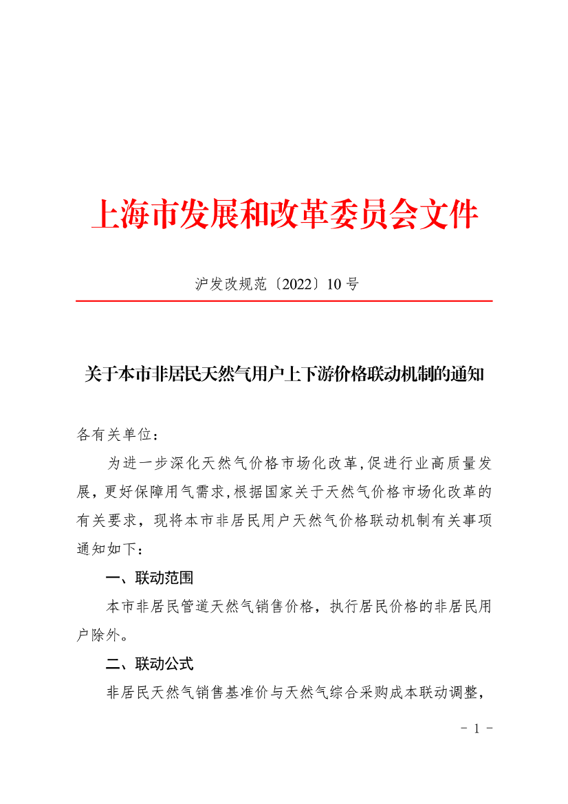 为进一步深化天然气价格市场化改革,促进行业高质量发展,更好保障用气需求,根据国家关于天然气价格市场化改革的有关要求,现将本市非居民用户天然气价格联动机制有关事项通知如下: