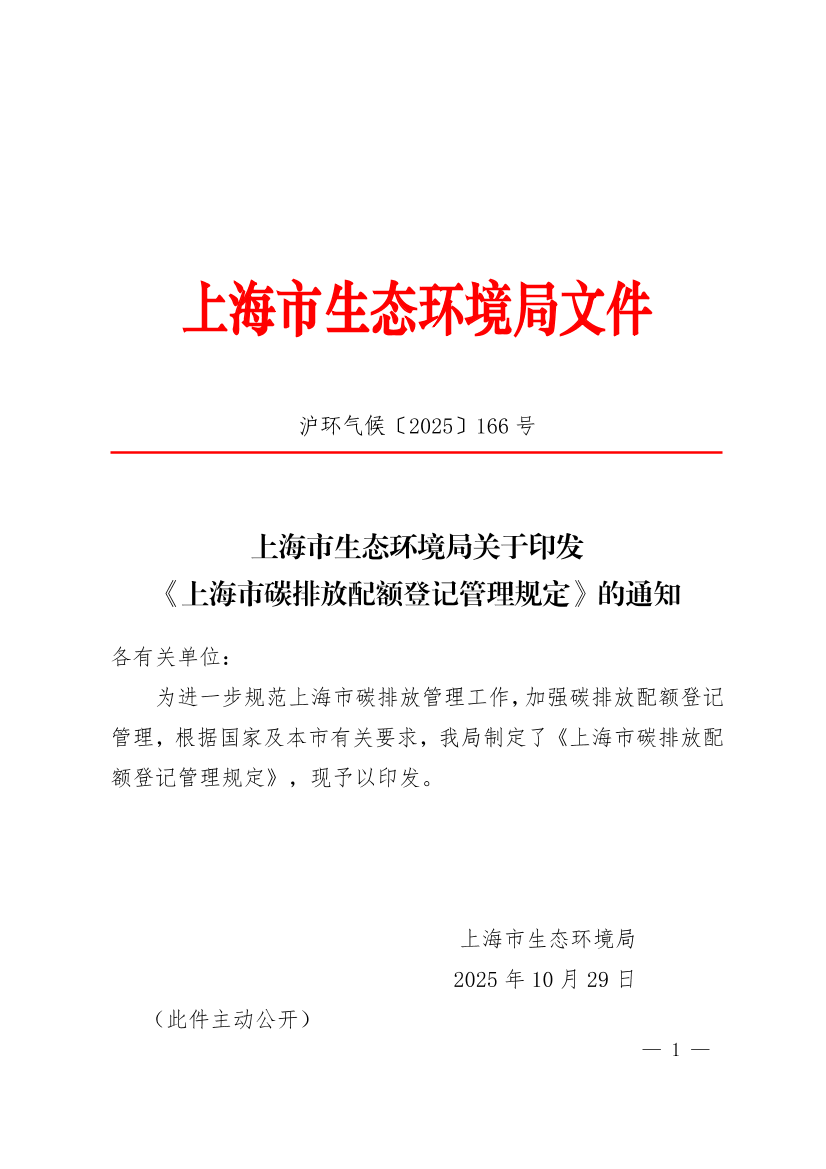 为进一步规范上海市碳排放管理工作,加强碳排放配额登记管理,根据国家及本市有关要求,我局制定了《上海市碳排放配额登记管理规定》,现予以印发。