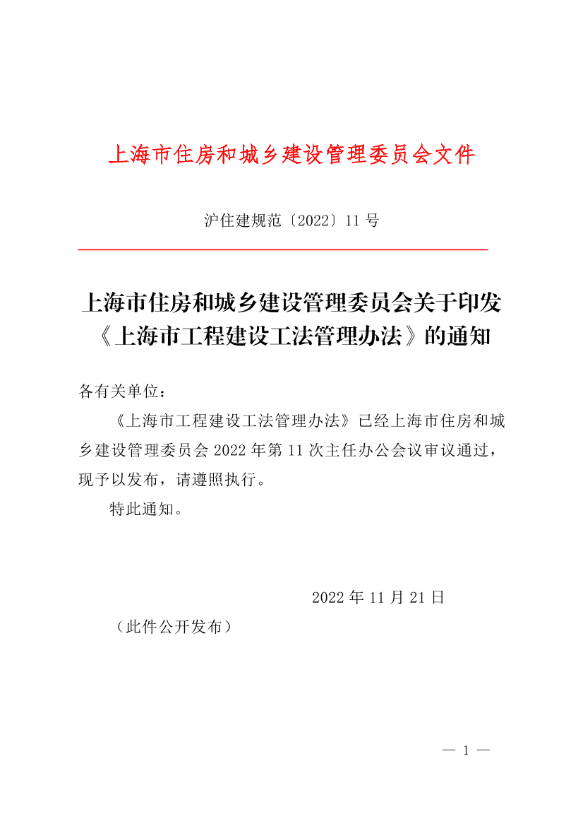 《上海市工程建设工法管理办法》已经上海市住房和城乡建设管理委员会2022年第11次主任办公会议审议通过,现予以发布,请遵照执行。