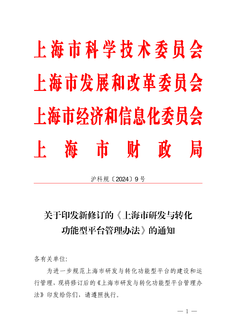 为进一步规范上海市研发与转化功能型平台的建设和运行管理,现将修订后的《上海市研发与转化功能型平台管理办法》印发给你们,请遵照执行。