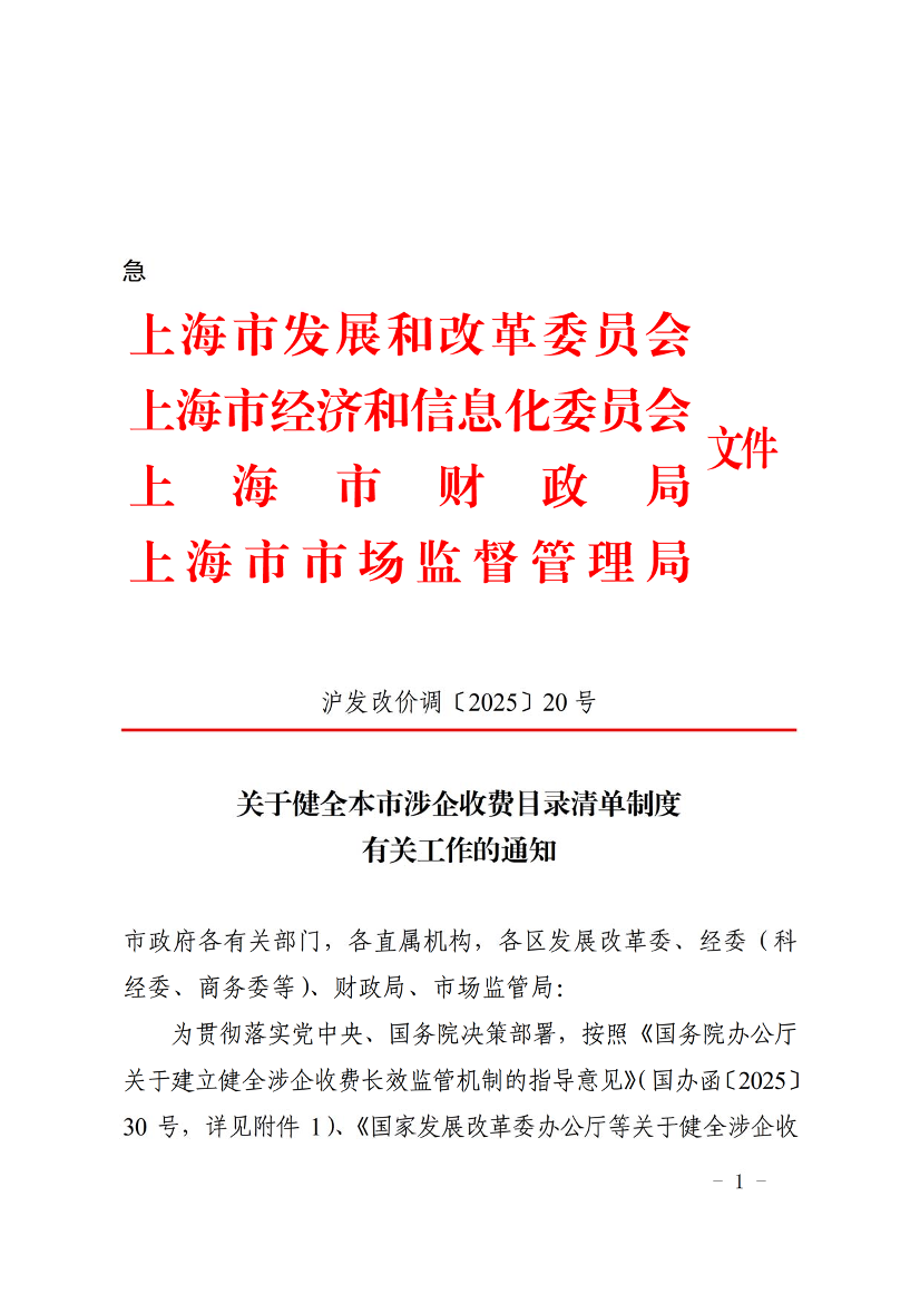 为贯彻落实党中央、国务院决策部署,按照《国务院办公厅关于建立健全涉企收费长效监管机制的指导意见》(国办函〔2025〕30号,详见附件1)、《国家发展改革委办公厅等关于健全涉企收费目录清单制度有关工作的通知》(发改办价格〔2025〕436号,详见附件2)等文件要求,现就健全本市涉企收费目录清单(以下简称目录清单)制度等有关事项通知如下。