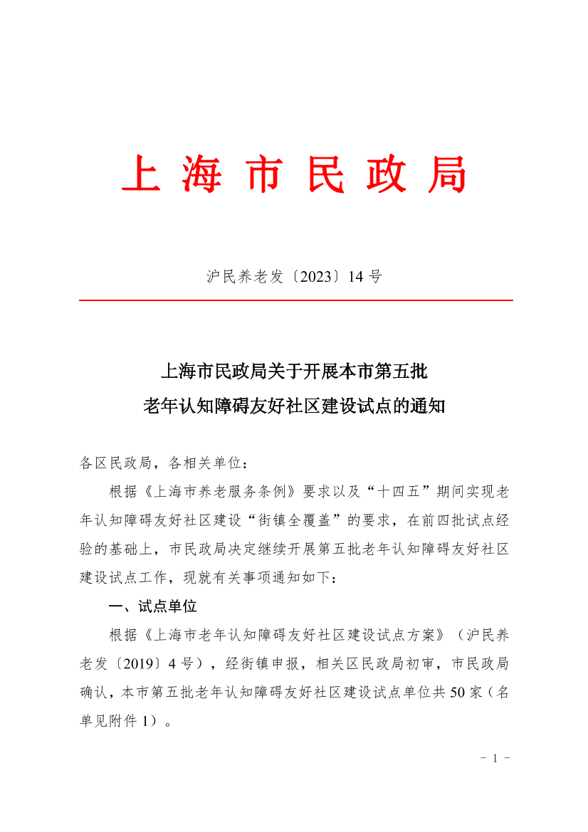 根据《上海市老年认知障碍友好社区建设试点方案》(沪民养老发〔2019〕4号),经街镇申报,相关区民政局初审,市民政局确认,本市第五批老年认知障碍友好社区建设试点单位共50家(名单见附件1)。