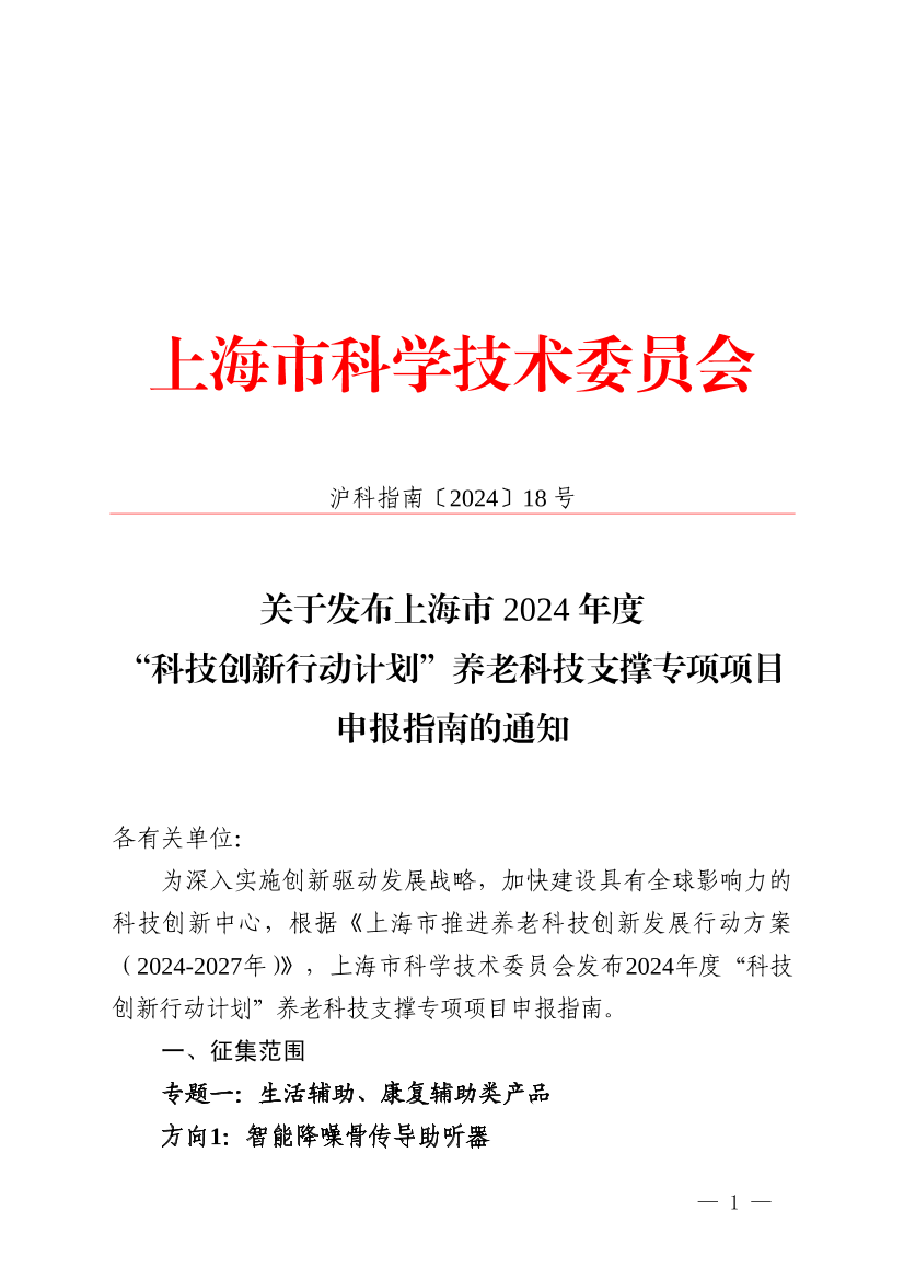 为深入实施创新驱动发展战略,加快建设具有全球影响力的科技创新中心,根据《上海市推进养老科技创新发展行动方案(2024-2027年)》,上海市科学技术委员会发布2024年度“科技创新行动计划”养老科技支撑专项项目申报指南。