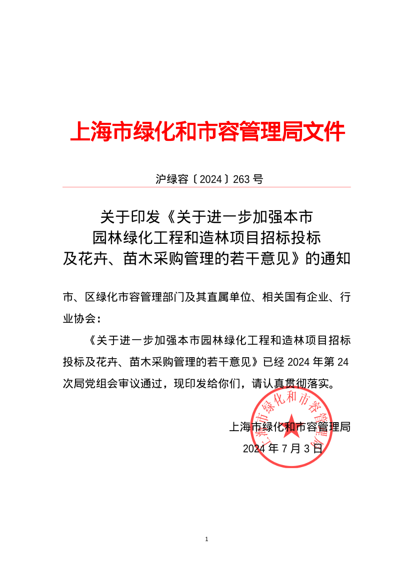 《关于进一步加强本市园林绿化工程和造林项目招标投标及花卉、苗木采购管理的若干意见》已经2024年第24次局党组会审议通过,现印发给你们,请认真贯彻落实。