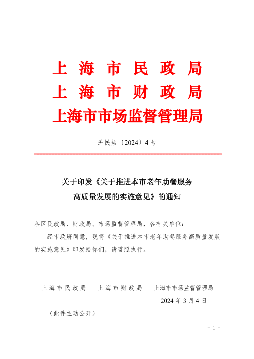 老年助餐服务是老年人普遍关心的民生需求,也是各级党委政府最关切最重视的民生实事之一。近年来,本市大力发展老年助餐服务场所、丰富助餐服务供给、提升助餐服务水平,基本满足了老年人就近、便捷、优质的就餐需求。为深入贯彻落实国家《积极发展老年助餐服务行动方案》和市委市政府决策部署,推动本市老年助餐服务高质量发展,制定本实施意见: