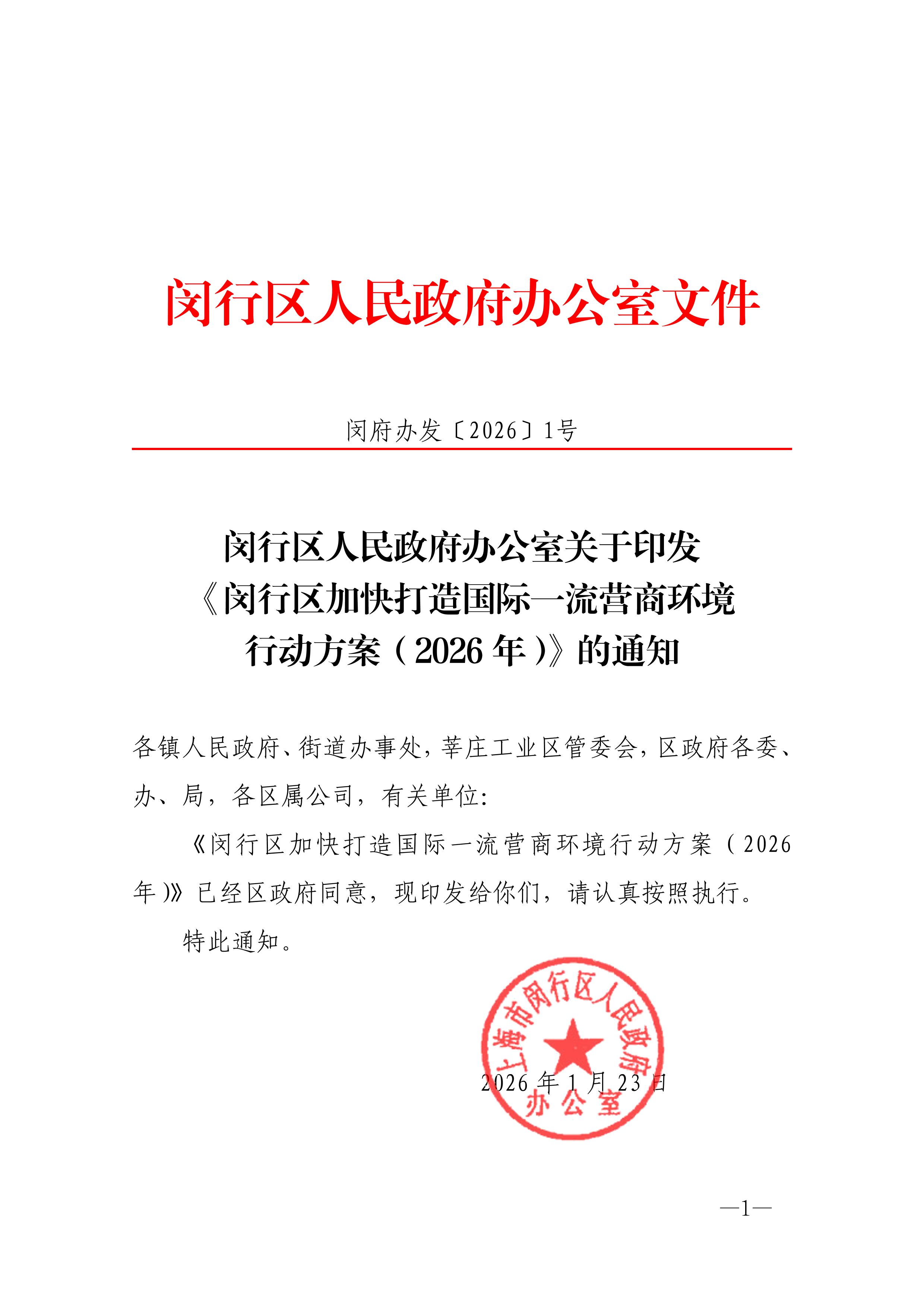 闵行区人民政府办公室 2026年1月23日印发 |
