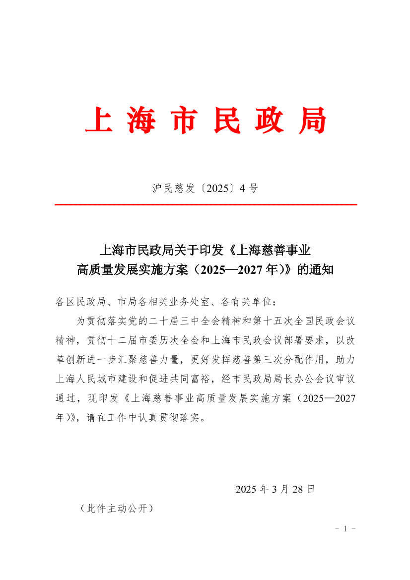 上海慈善事业高质量发展实施方案(2025—2027年)