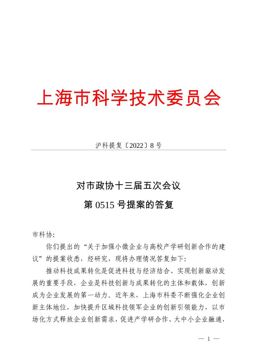 你们提出的“关于加强小微企业与高校产学研创新合作的建议”的提案收悉,经研究,现将办理情况答复如下: