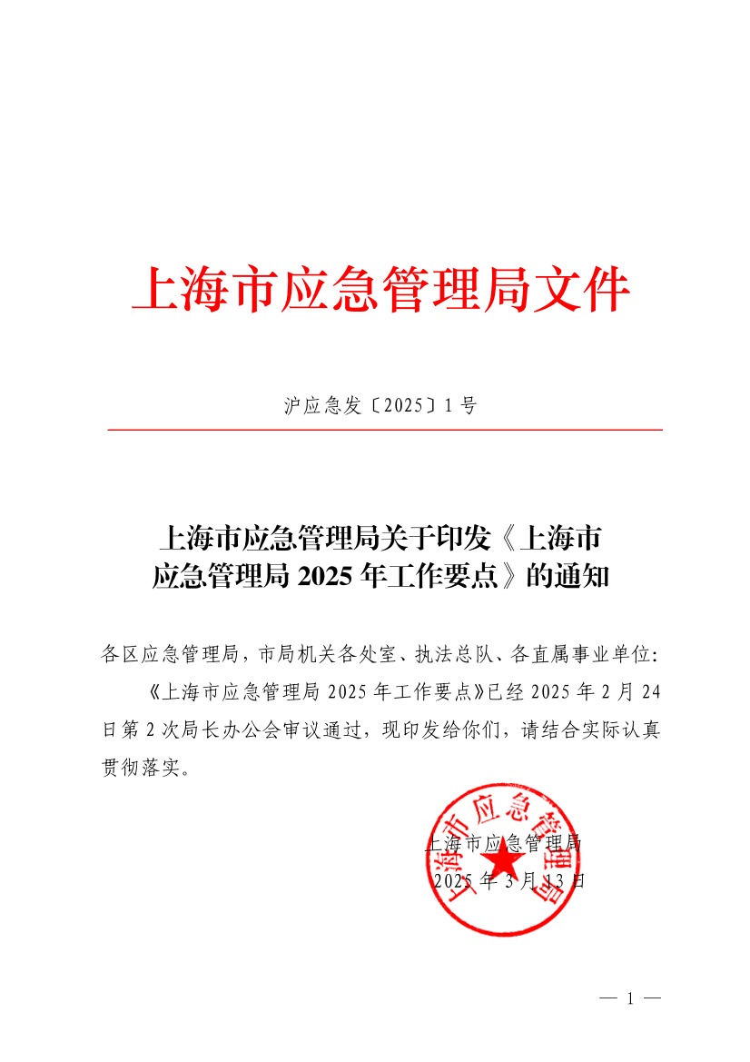 《上海市应急管理局2025年工作要点》已经2025年2月24日第2次局长办公会审议通过,现印发给你们,请结合实际认真贯彻落实。