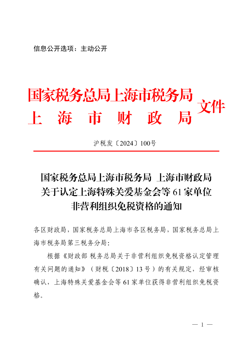 根据《财政部 税务总局关于非营利组织免税资格认定管理有关问题的通知》(财税〔2018〕13号)的有关规定,经审核确认,上海特殊关爱基金会等61家单位获得非营利组织免税资格。