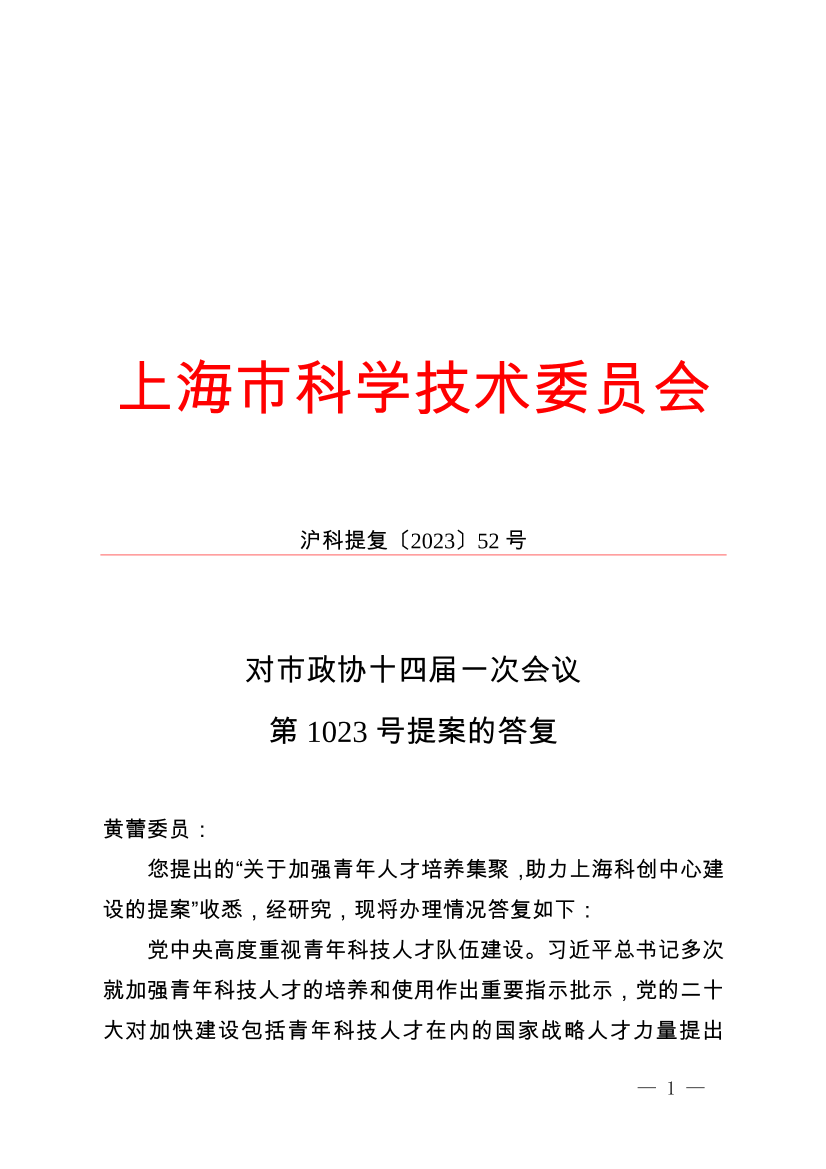您提出的“关于加强青年人才培养集聚,助力上海科创中心建设的提案”收悉,经研究,现将办理情况答复如下: