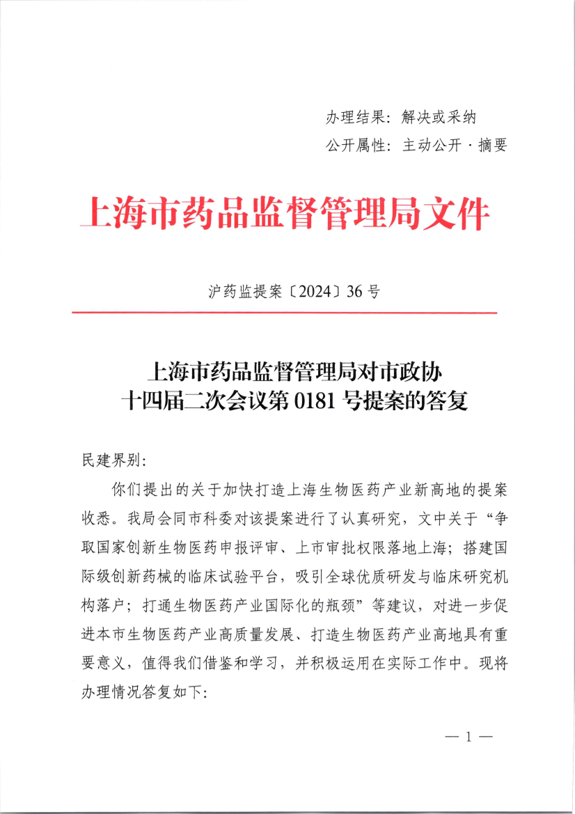 你们提出的关于加快打造上海生物医药产业新高地的提案收悉。我局会同市科委对该提案进行了认真研究,文中关于“争取国家创新生物医药申报评审、上市审批权限落地上海;搭建国际级创新药械的临床试验平台,吸引全球优质研发与临床研究机构落户;打通生物医药产业国际化的瓶颈”等建议,对进一步促进本市生物医药产业高质量发展、打造生物医药产业高地具有重要意义,值得我们借鉴和学习,并积极运用在实际工作中。现将办理情况答复如下: