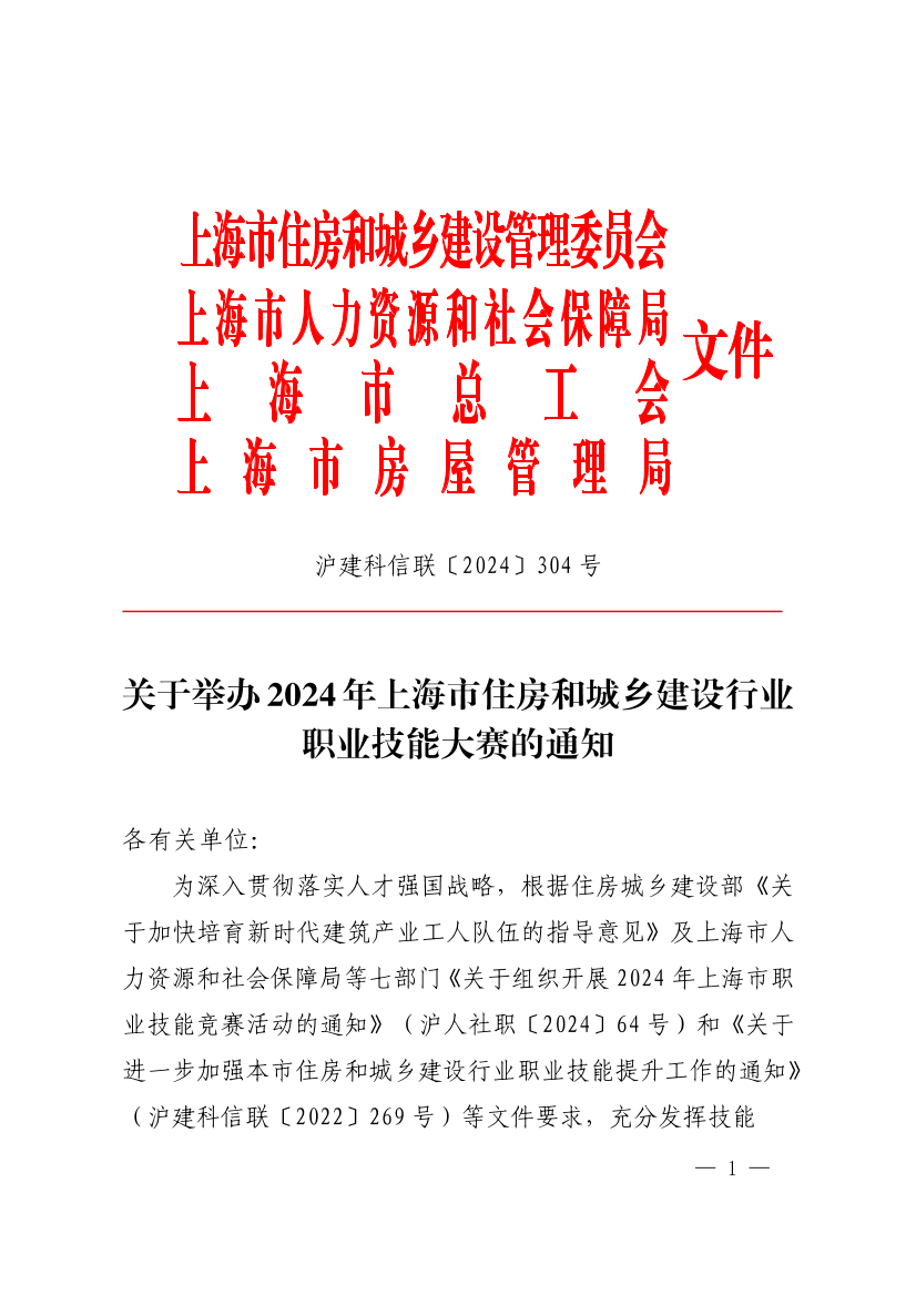 关于举办2024年上海市住房和城乡建设行业职业技能大赛的通知
