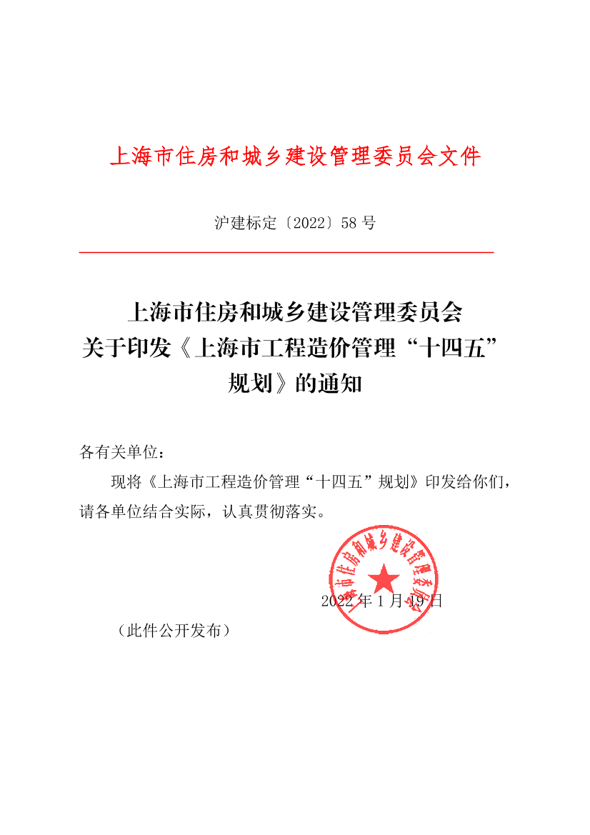 关于印发《上海市工程造价管理“十四五”规划》的通知