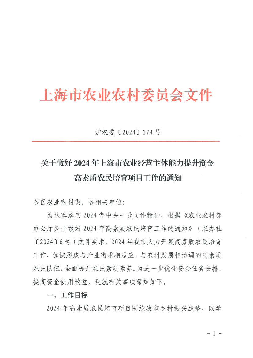 为认真落实2024年中央一号文件精神,根据《农业农村部办公厅关于做好2024年高素质农民培育工作的通知》(农办社〔2024〕6号)文件要求,2024年我市大力开展高素质农民培育工作,加快形成与产业需求相适应、与农村发展相协调的高素质农民队伍,全面提升农民素质素养。为进一步优化资金任务安排,提高资金使用效益,现就有关事项通知如下。