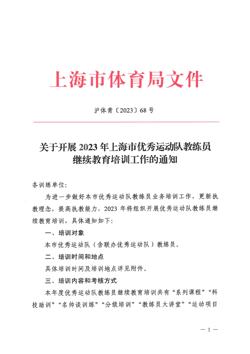 为进一步做好本市优秀运动队教练员业务培训工作,更新执教理念,提高执教能力,2023年将组织开展优秀运动队教练员继续教育培训,具体通知如下: