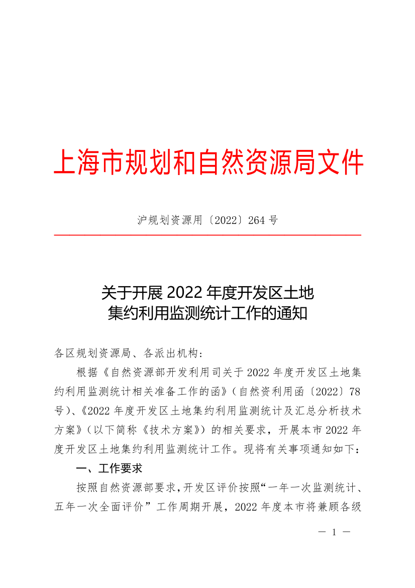 根据《自然资源部开发利用司关于2022年度开发区土地集约利用监测统计相关准备工作的函》(自然资利用函〔2022〕78号)、《2022年度开发区土地集约利用监测统计及汇总分析技术方案》(以下简称《技术方案》)的相关要求,开展本市2022年度开发区土地集约利用监测统计工作。现将有关事项通知如下: