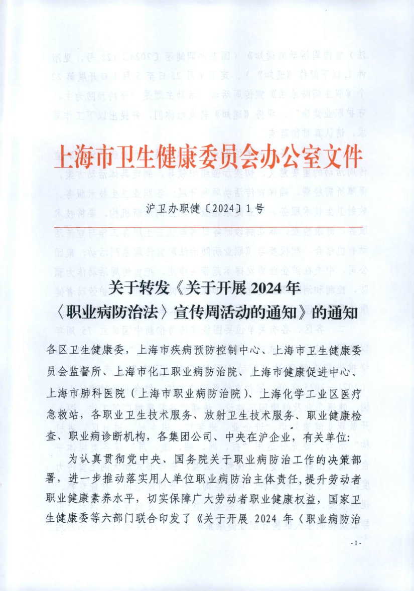 附件:1.关于开展2024年《职业病防治法》宣传周活动的通知
